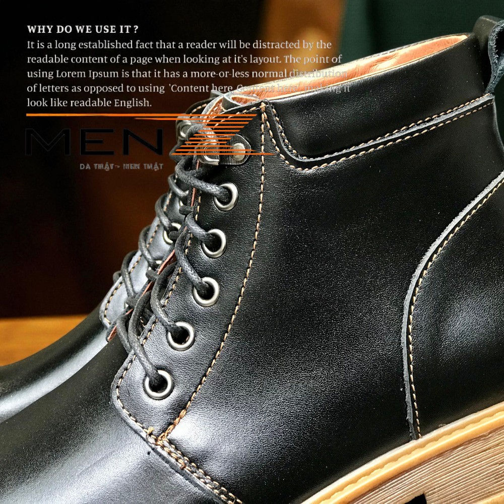 MenZ – Thương hiệu Đồ Da Nam Số 1 Việt Nam, luôn tiên phong mang đến những sản phẩm thời trang da bò thật tinh tế, bền bỉ và đẳng cấp nhất. Trải nghiệm ngay sự khác biệt của Giày Nam Cao Cổ để khẳng định phong cách vượt trội của chính bạn!